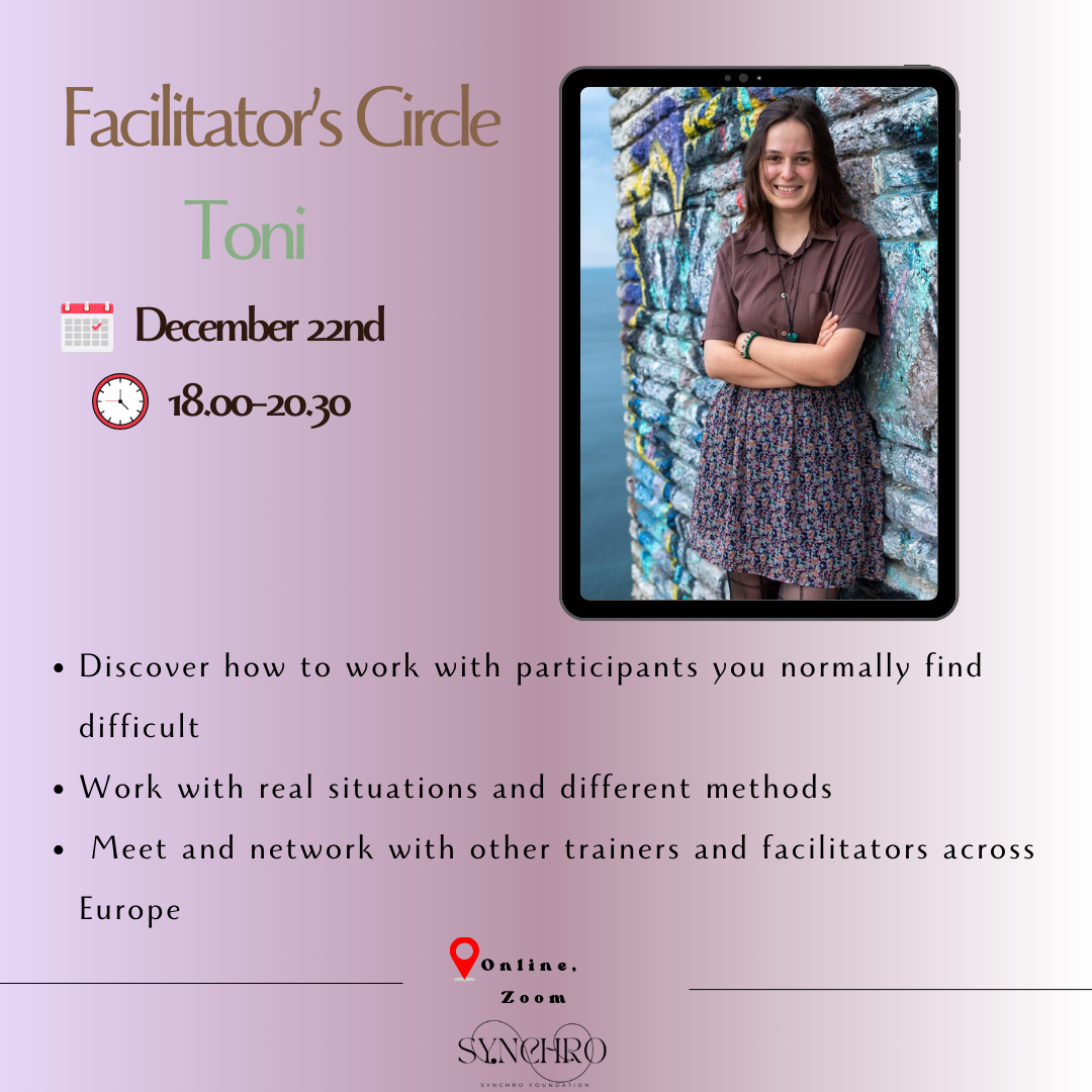 Are you a facilitator working with people aged 18-30? If so, this online meet-up is designed just for you! Join us for a dynamic event where facilitators from across the EU come together to support one another, share experiences, exchange information and tools, and learn from each other’s practices. This month’s session will examine difficult situations that facilitators may find themselves in, and together we will explore different approaches to deal with them. We will look at those difficult situations through the lenses of nonviolent communication, transactional analysis, systemic thinking, and storytelling. This meet-up is not just an event; it’s a chance to build a supportive community of facilitators, exchange ideas, and enhance our practice collectively. Join us in creating a network where we can grow together and empower our work with young people.